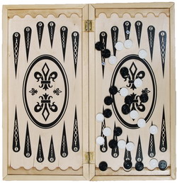 Бросая кости и передвигая шашки в соответствии с выпавшими очками, пройти шашками полный круг по доске, зайти ими в свой дом и выбросить их за доску раньше, чем это сделает противник.